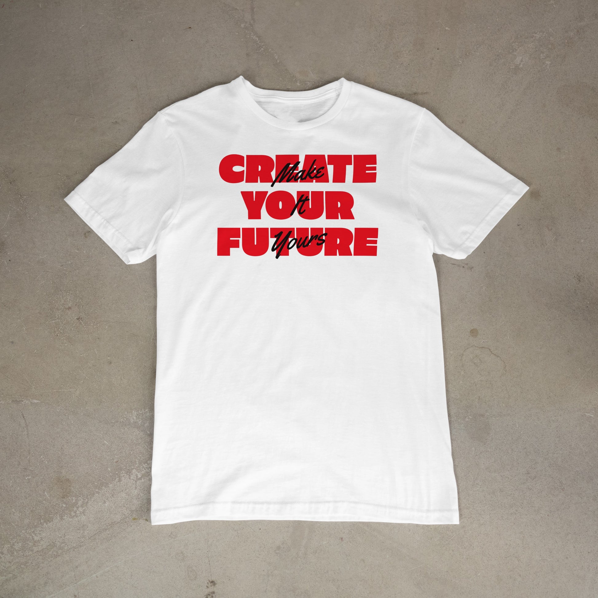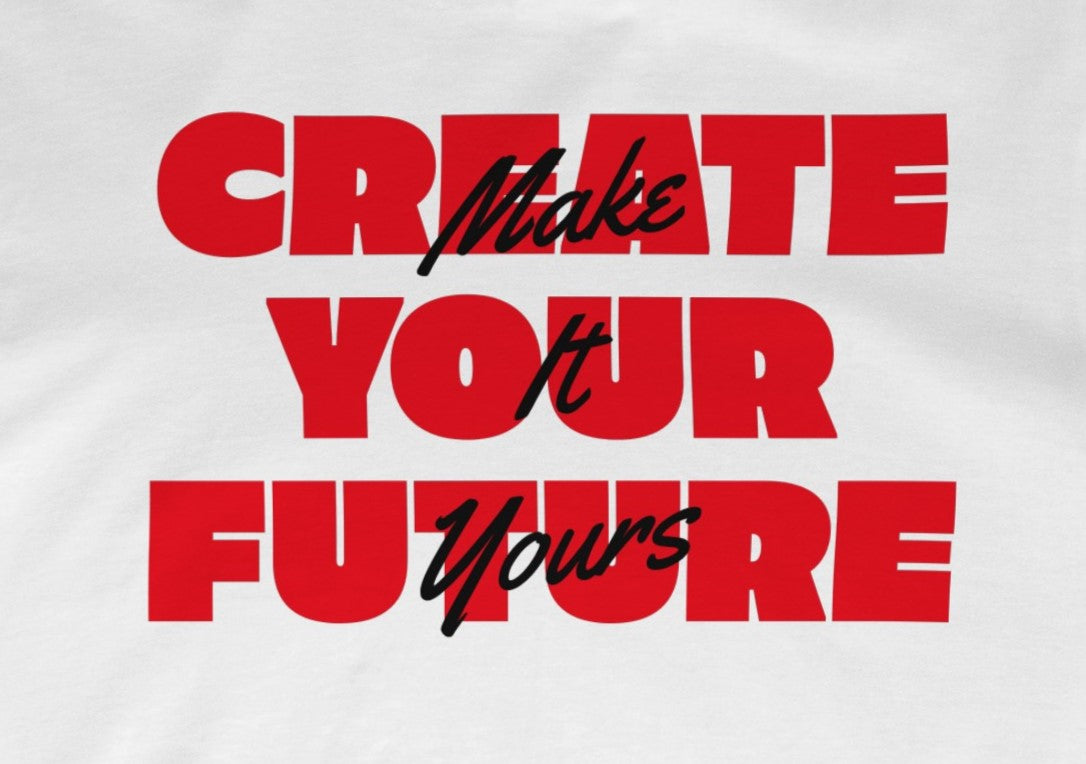 Take control of your destiny with the Create Your Future – Make It Yours design from Wearmii. Bold red block lettering paired with sleek script delivers a motivational statement that’s impossible to ignore.